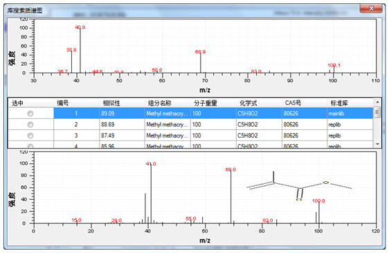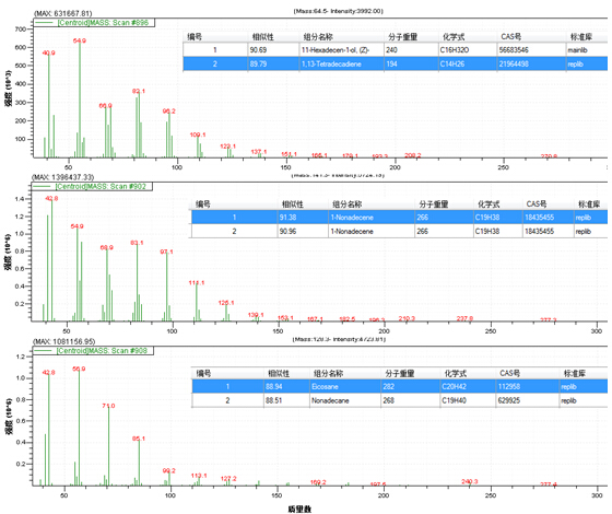 图2.3  三重峰的质谱图(图2.2中8.6~8.9 min)经NIST2014库确认