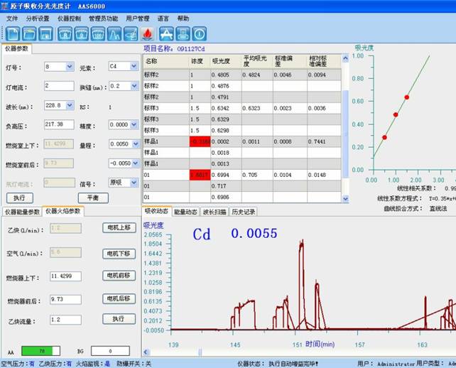 (二)检样除理 各种合金货品多样,应给出图纸材質确定不同的的前处里技术,涵盖酸溶、碱熔、聚集分开等。 (三)标准的硫酸铜溶液专门配制 用1000ug/ml 的单元尺寸素规则茶叶保存稀硫酸随等级标定成流程氧浓度的的工作稀硫酸。 (四)实际情况样板举个例子 铝及铝碳素钢物理探讨的方式——燃烧的火焰氧分子吸纳光谱分析法旋光度的测定镉量 1 形式提要 试料用硝酸和过防氧化氢溶解出来,于氧原子汲取光谱仪仪吸光度228.8 nm处,以气氛-乙炔贫燃烈焰对其进行镉成分的测定法。 2 样板进行处理 2.1 称取 0. 5000 g 试件材料,精准度至0.0001 g,放置在200 mL 烧杯内,加人15 mL 稀盐酸(1+1),待晕厥体现停此后,加人10 滴过空气阳极氧化氢,比较慢调温至试料完成溶解度,烧开,然至过空气阳极氧化氢完成转换,急冷。 2.2 予以不溶物,活性炭过滤程序,洗涤剂。将沉渣带上活性炭过滤纸放置增祸中,灰化。于550 ℃灼痛,闭式冷却塔塔。加人2 mL 氰化钠钠(1+1),5mL 氢佛酸,并逐滴入人氰化钠(1+1)至溶剂清亮。高温化掉至干,于 700 ℃ 灼痛数多分钟,闭式冷却塔塔,想尽量少的硫酸(1+1)降解沉渣(有需要时活性炭过滤程序),将此溶剂并到于主滤液中。 3 准则曲线方程的编写 最准确移取0.1mL,0.2mL,0.3mL,0.4mL,0.5mL 1000 ug/ml镉细则单位硫酸铜饱和液体,区分移至一列100mL余量瓶中,融入2mL盐酸(1+1),供水稀释液至刻线,混匀。在与量测试液质同必备条件下,量测一系列细则单位硫酸铜饱和液体的吸光度,减去零氧渗透压硫酸铜饱和液体的吸光度,以镉的氧渗透压为横轴定位,吸光度为纵作标定位生成事情直线。 4 试样测试英文 于原子核吸引光谱分析仪 228.8 nm 处,选用气体-乙炔贫燃烈火,以水调零,侧量试液的吸光度,减去伴随试料的空白一片做实验的时候饱和溶液的吸光度,从操作曲线上销售检查出相关的的镉含量。