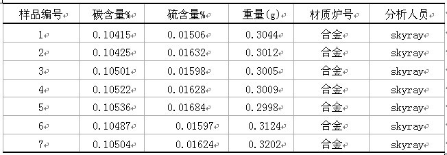 一不锈钢国家行业标准GBW(E)010136-9901(C%:0.104,S%:0.015)用高频率红外碳硫仪168型测式最终如下所示: ①操作弧度: