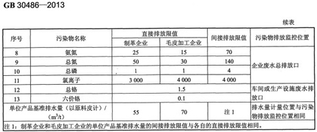 《纺织印染及基础生产方式加工制造轻工业水的环境污染源减排原则》(GB30486-2013)中指明明文法律法规了,纺织印染及毛皮生产方式加工制造商家水的环境污染源减排值、监测网和追踪设备追求,及原则的制定一个和督察等重要性明文法律法规,里面2011年5月1以后兴建商家其污泥渗漏中总铬的减排原则为1.5mg/L,六价铬的减排原则为0.1mg/L,其减排追踪设备区域为工厂或生产方式加工油烟净化器焦化废水处理减排口;2011年5月1日前另一商家其污泥渗漏中总铬的减排原则为1.5mg/L,六价铬的减排原则为0.2mg/L,其减排追踪设备区域为工厂或生产方式加工油烟净化器焦化废水处理减排口;二零一六年一月份1以后,大多数商家均按兴建商家原则实施。
