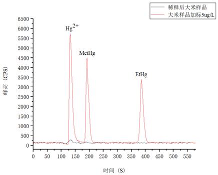 图5. 大米样品及样品加标5.0µg/L图谱