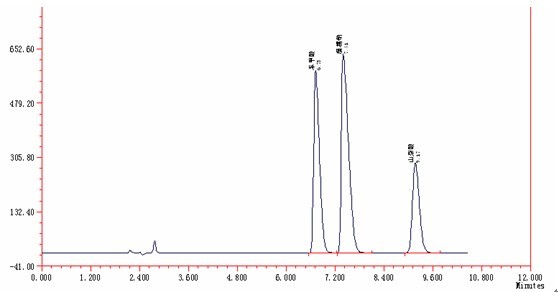 2、标准规定饱和溶液的手机配置 用超蒸馏水分离将3种标准单位品调试成为宜有机废气浓度的苯甲酸,糖精钠、山梨酸的产出库液,预备。利用时日离取各产出库液适量的,用甲醇扑灭成搭配标液,待测。