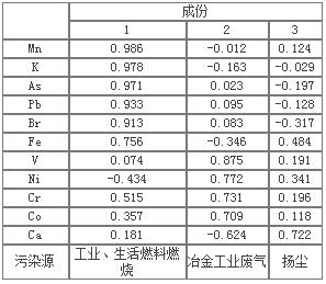 表1 EHM-X200大气重金属监测仪监测数据组成分分析
