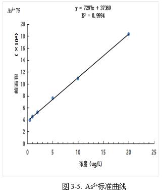 图2. 5种砷状态的混合型喂养标准化盐溶液色谱图 3.5.2标准单位斜率