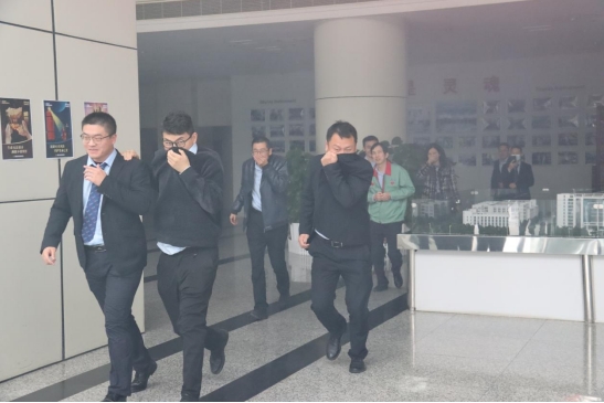 員工们遮着口鼻,制度化地从应紧口向外出逃